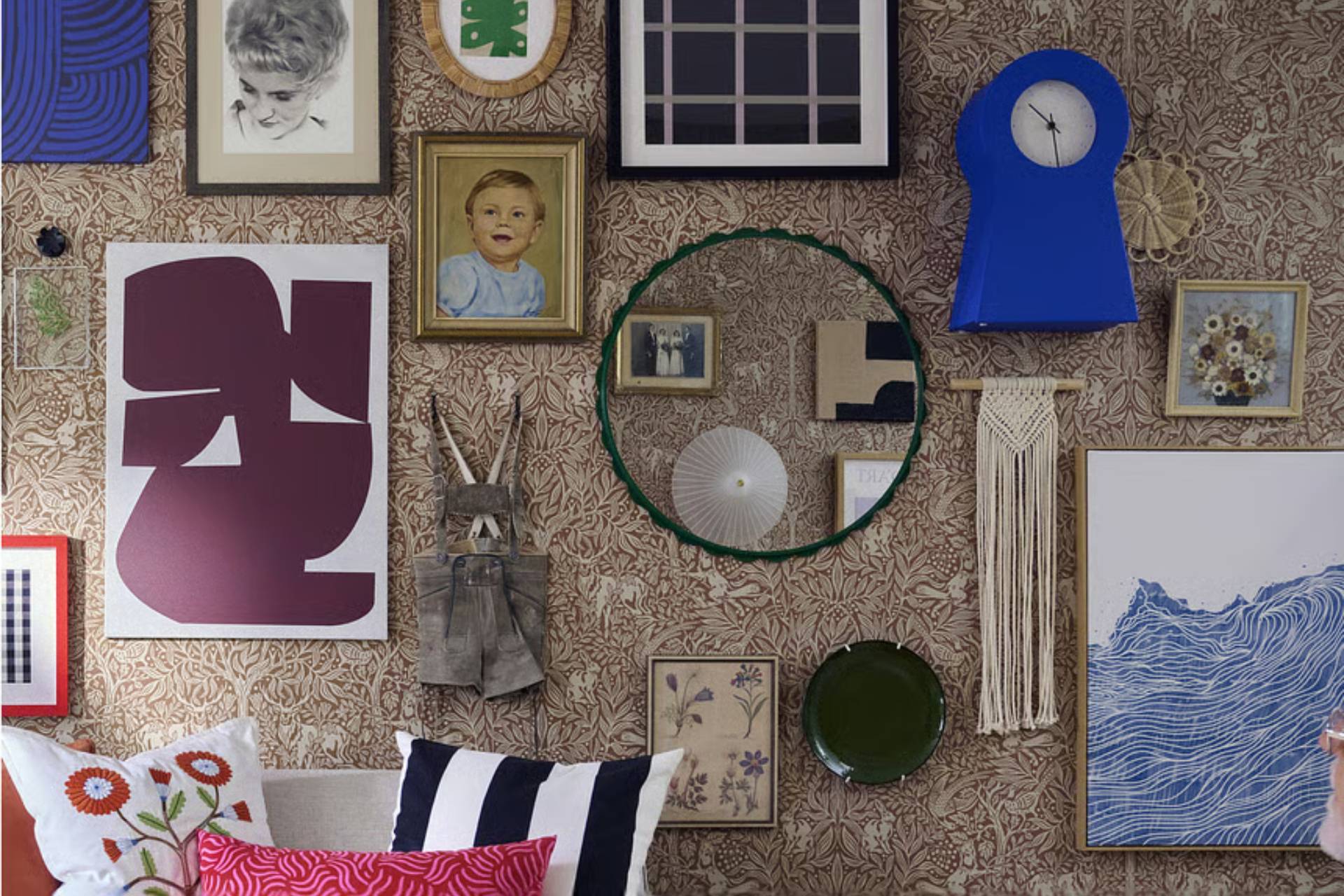 U dnevnim sobama gde se mešaju savremeni komadi sa vintidž ili ručno rađenim detaljima, kružno ogledalo deluje kao vizuelni „posrednik“.