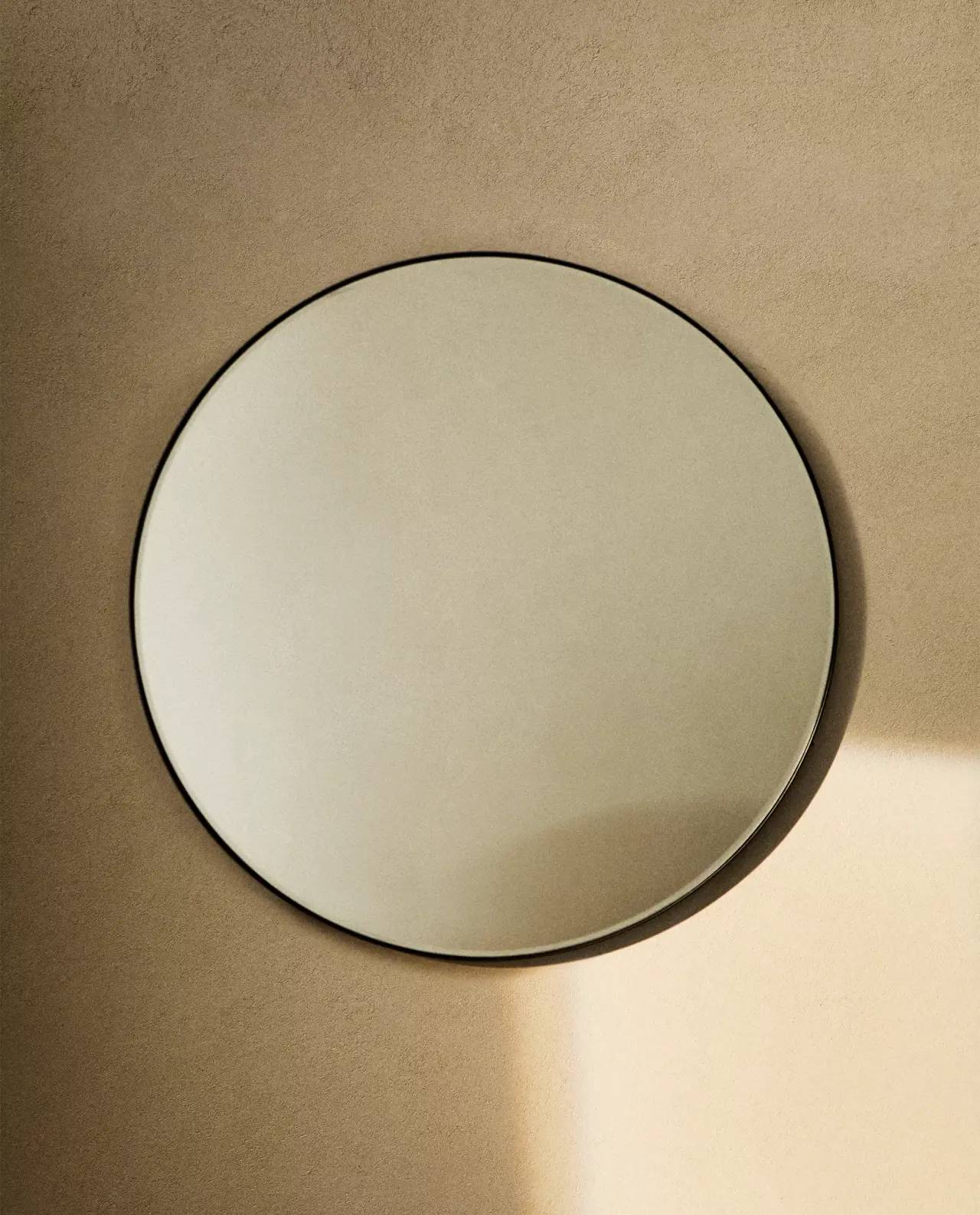 Veliko kružno ogledalo na zidu često preuzima ulogu centralnog akcenta, bez potrebe za dodatnom dekoracijom.