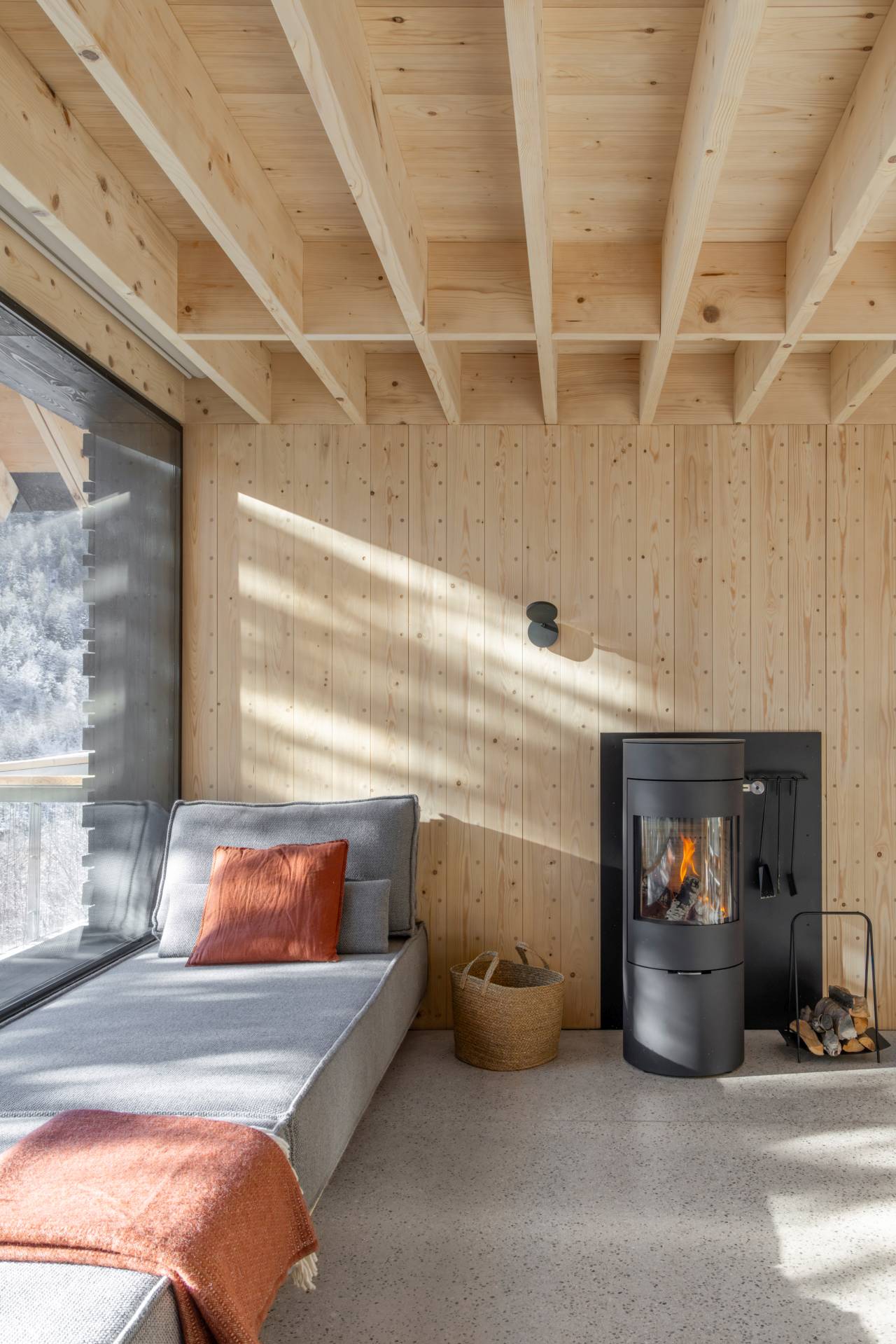 Iako se uklapa u tradiciju alpske arhitekture, enterijer je osmišljen da pruži savremen doživljaj.