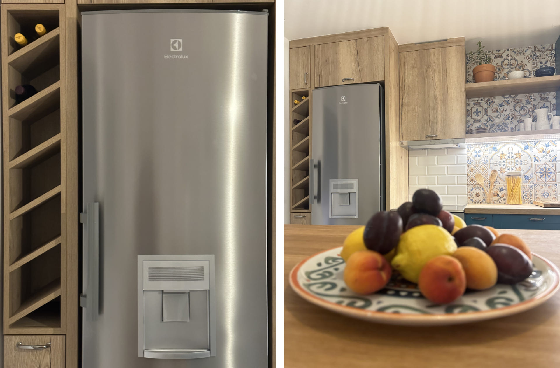 Ugradni elementi bele tehnike kombinovani su sa slobodnostojećim frižiderom sa zamrzivačem i ledomatom, čime je postignuta praktičnost svakodnevnog korišćenja.