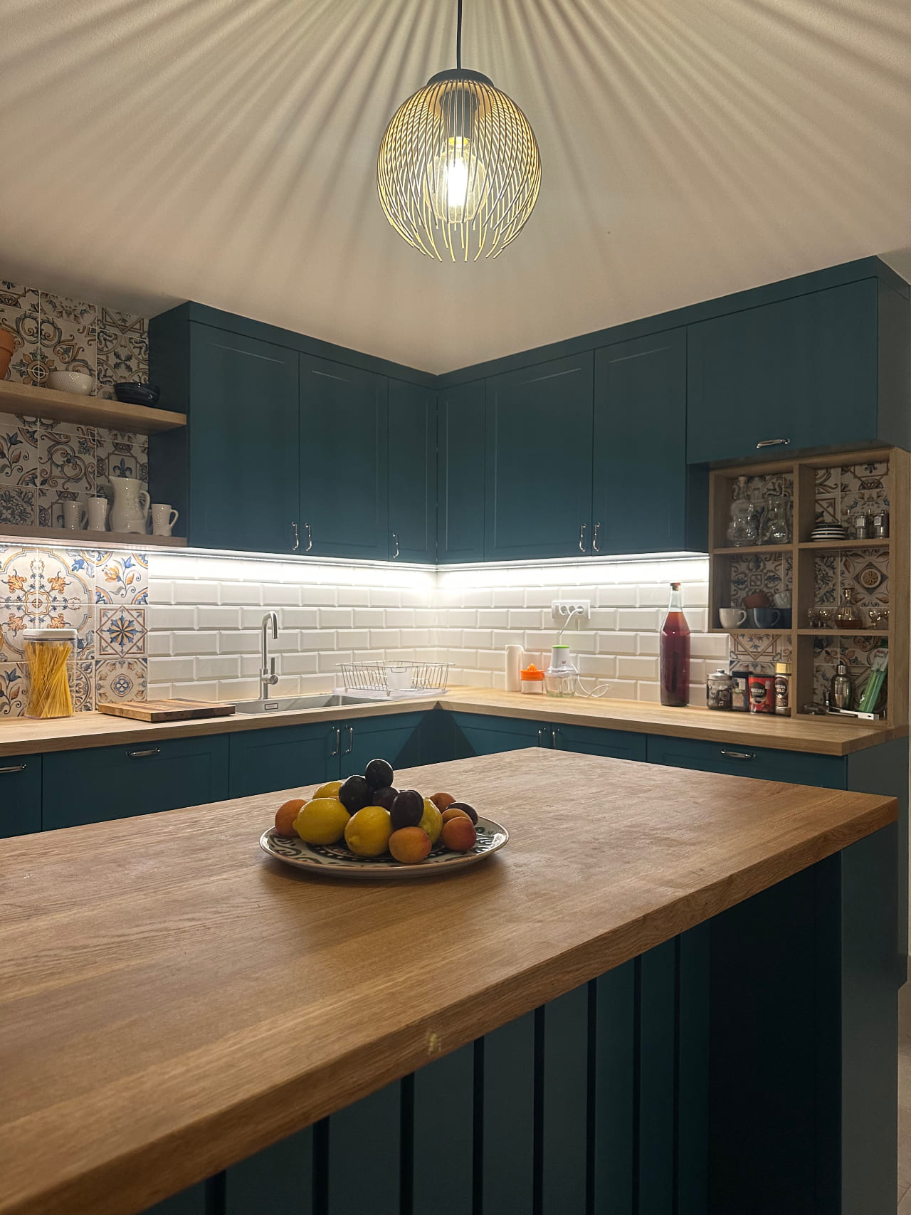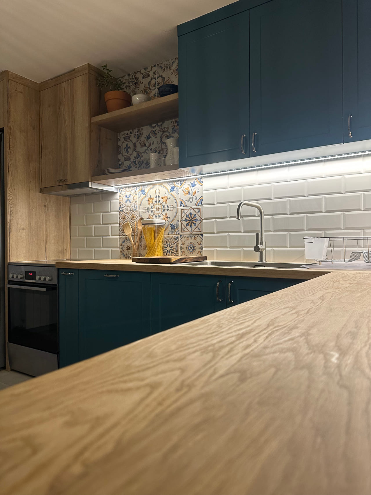 “Ova boja u kombinaciji sa drvenim elementima i dekorativnim pločicama stvara atmosferu koja podseća na mediteranske enterijere“, kaže Isidora Đurić.