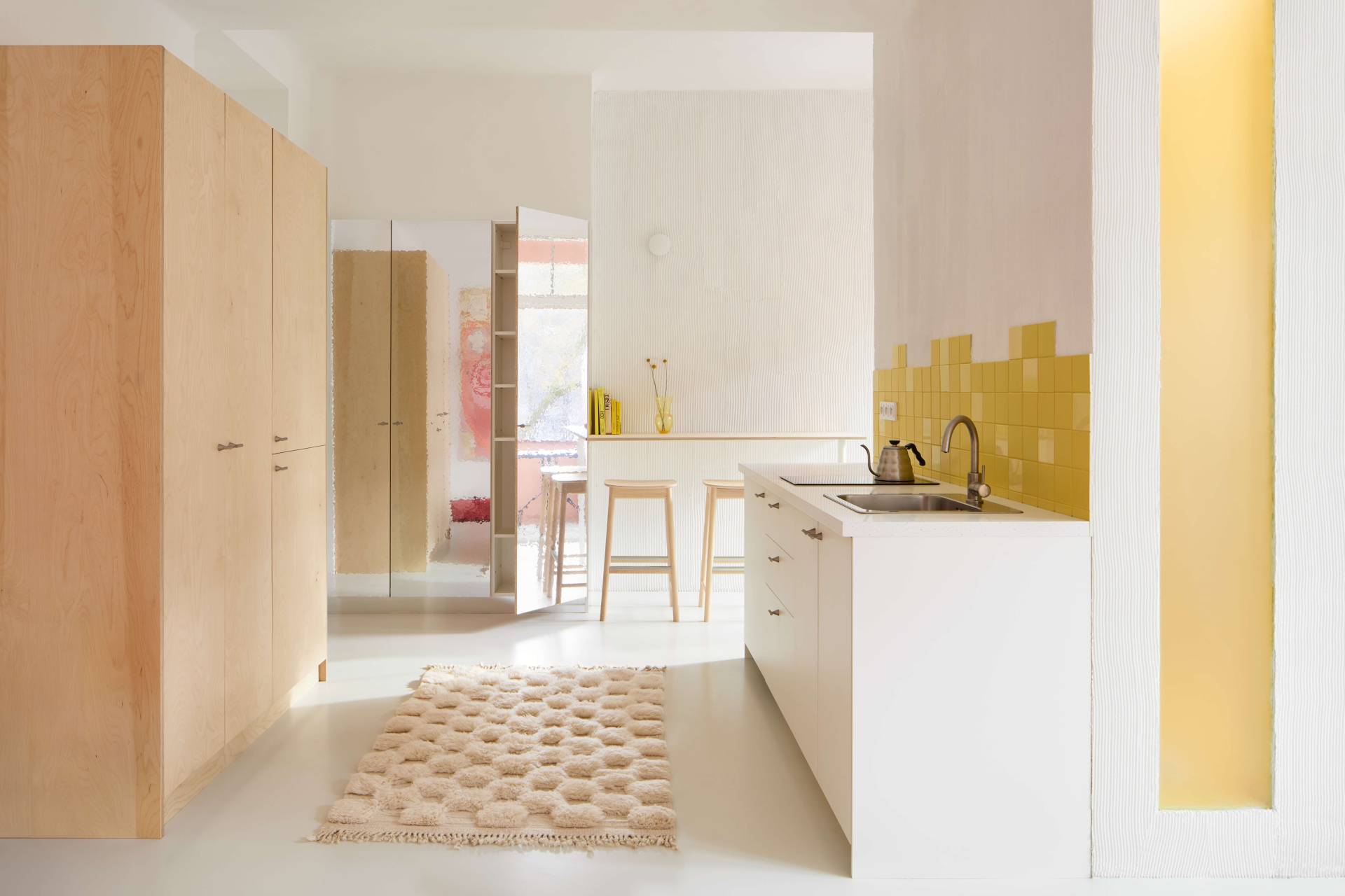 Enterijer u Pragu deluje veće nego što jeste zahvaljujući umetničkom senzibilitetu, svetlim materijalima i potpuno smirenoj atmosferi.