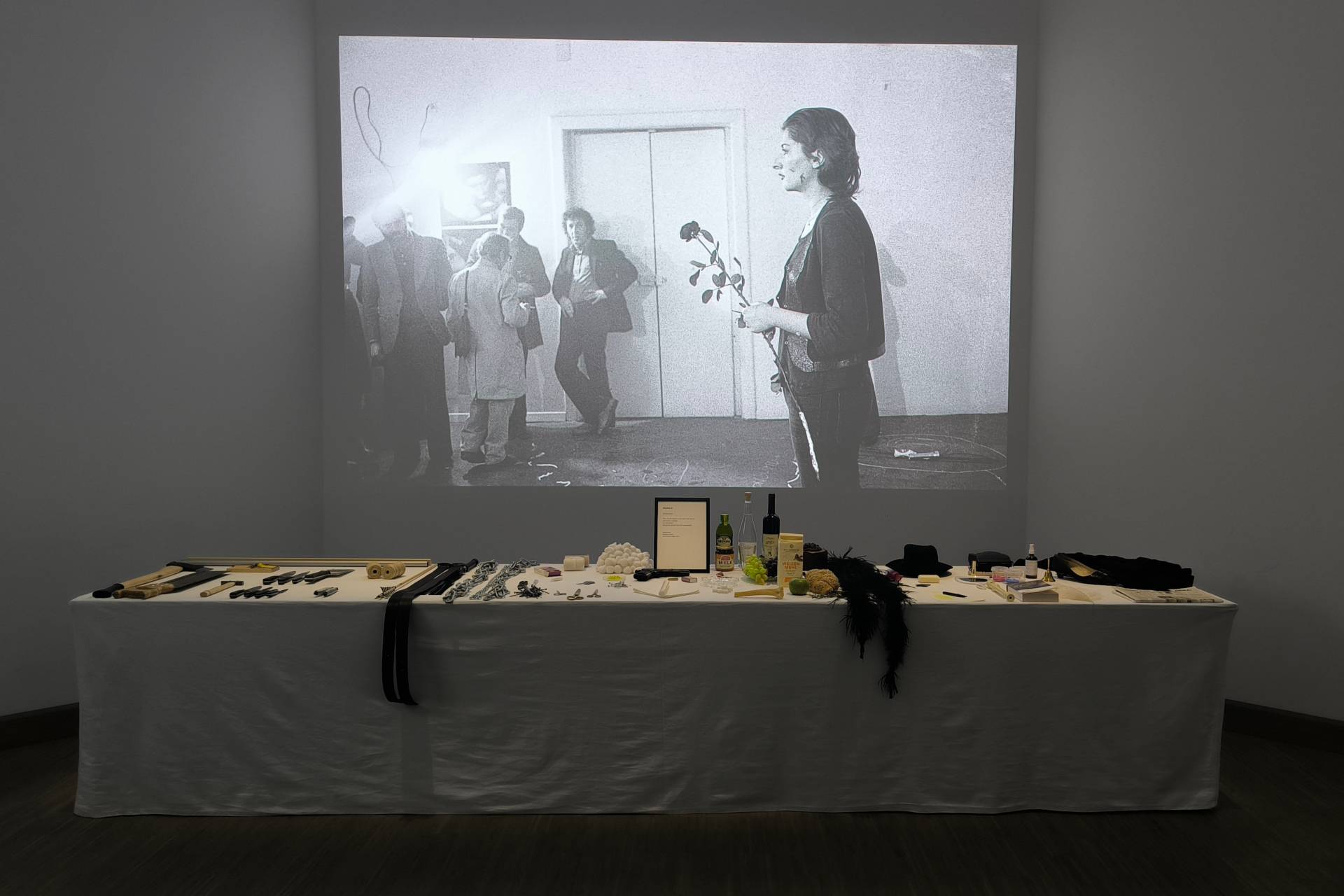 Drugi poznati performans Rhythm 0 iz 1974. godine predstavljen je kroz fotografije sa originalnog izvođenja u Napulju.