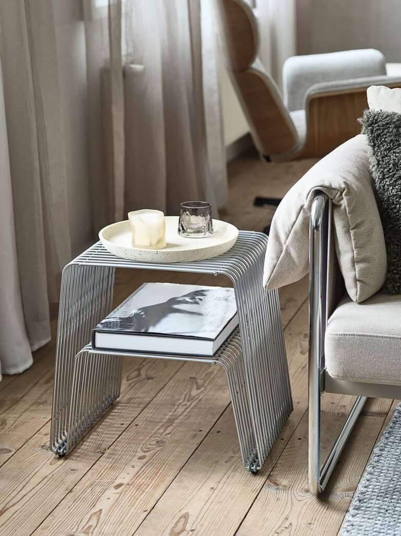 Rezultat? Više nego jasan povratak metalnih formi i hromiranih detalja, ali u modernijem, svedenijem izdanju koje se lako uklapa i u skandinavske, i u minimalističke enterijere.