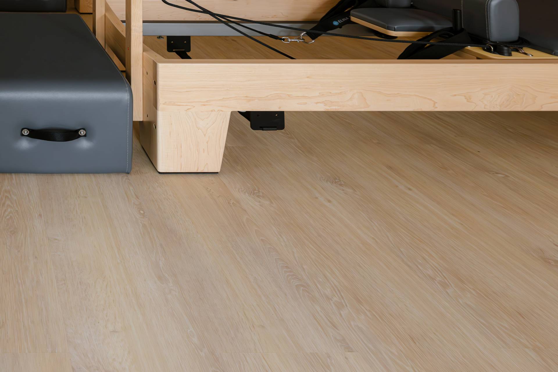 Najveći doprinos transformaciji dao je pod. “Opredelili smo se za Tarkett LVT pod jer podnosi težinu pilates sprava, lako se održava i može da se ukloni bez trajnih intervencija u prostoru”, navodi arhitektkinja.