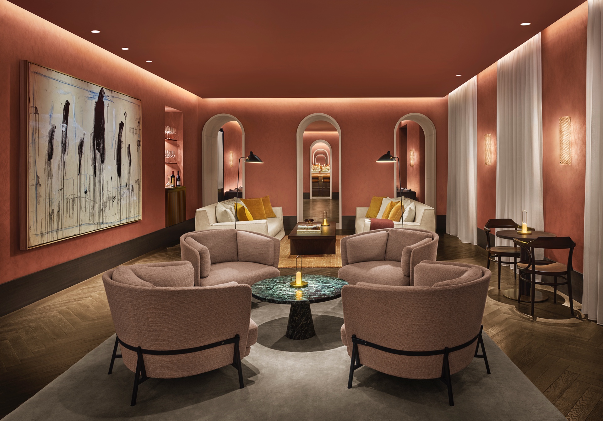 Iza projekta stoji poznati studio Neri&Hu, koji je odlučio da se udalji od dekorativnog neoklasicizma i prostor svede na osnovne, pažljivo odabrane elemente.