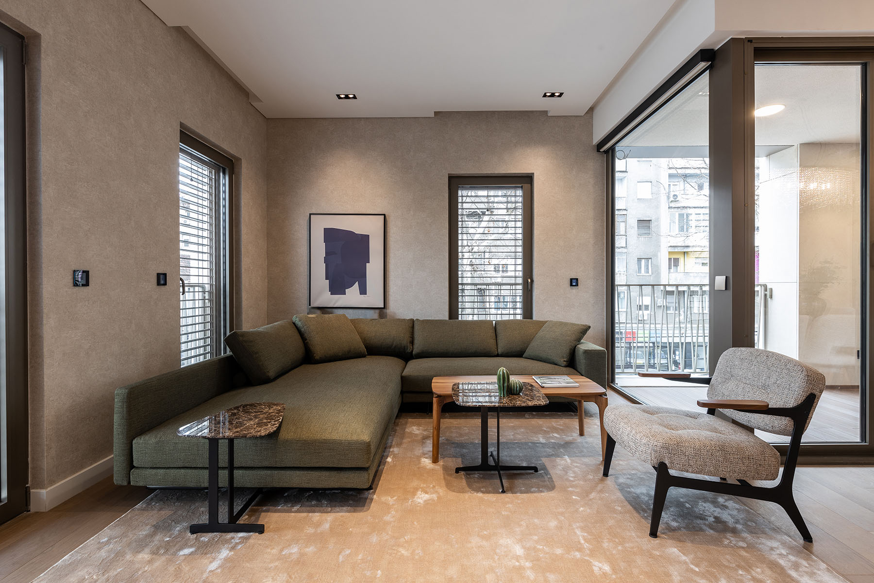 Klub i pomoćni stolovi se ističu kako formom, tako i specifičnim odabirom kamena.