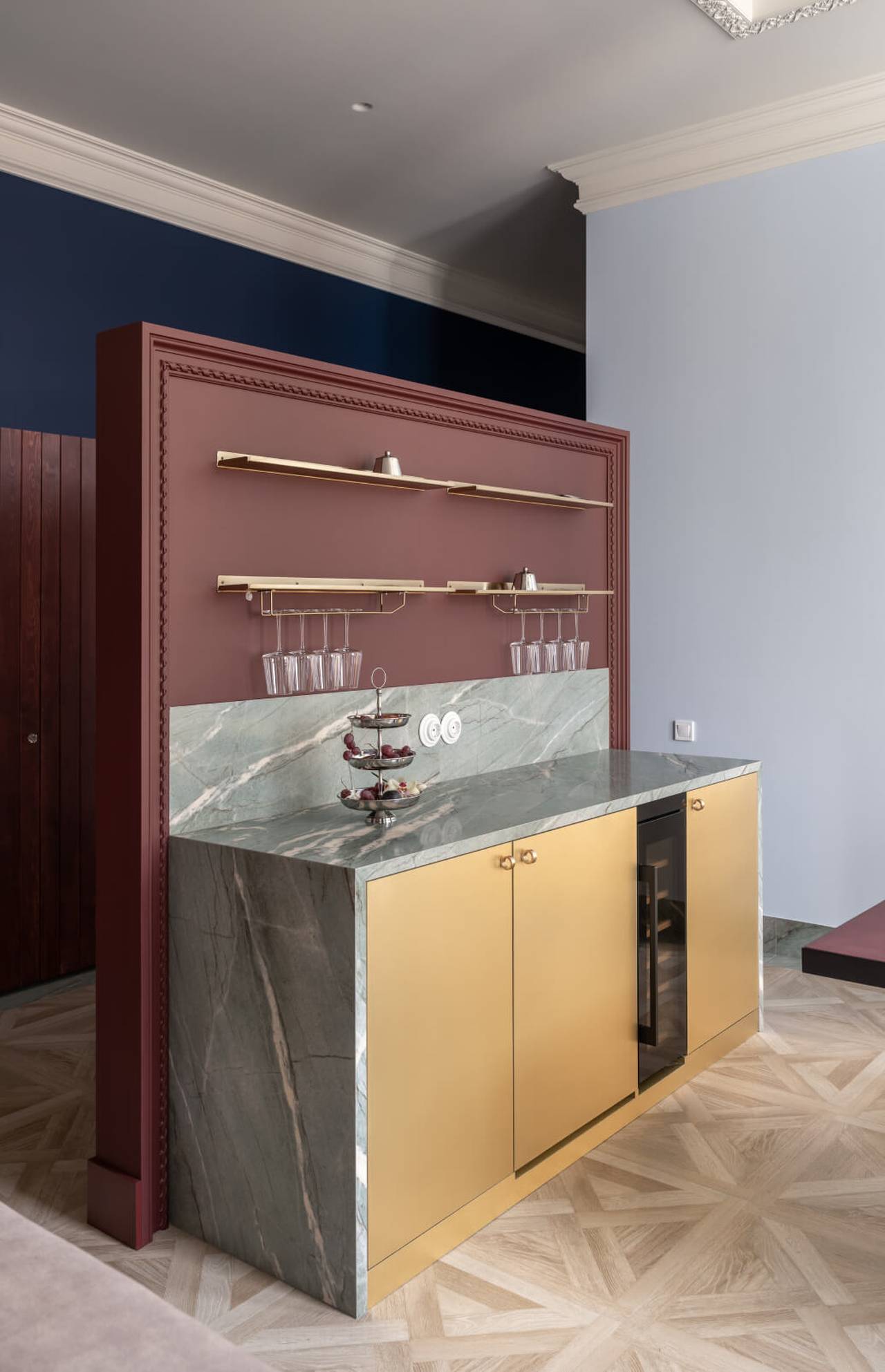 Poseban akcenat u ovoj prostoriji predstavlja vintidž ormar iz Odese, pronađen slučajno i u gotovo savršenom stanju. Nakon restauracije dobio je novu funkciju i postao jedan od ključnih elemenata enterijera.