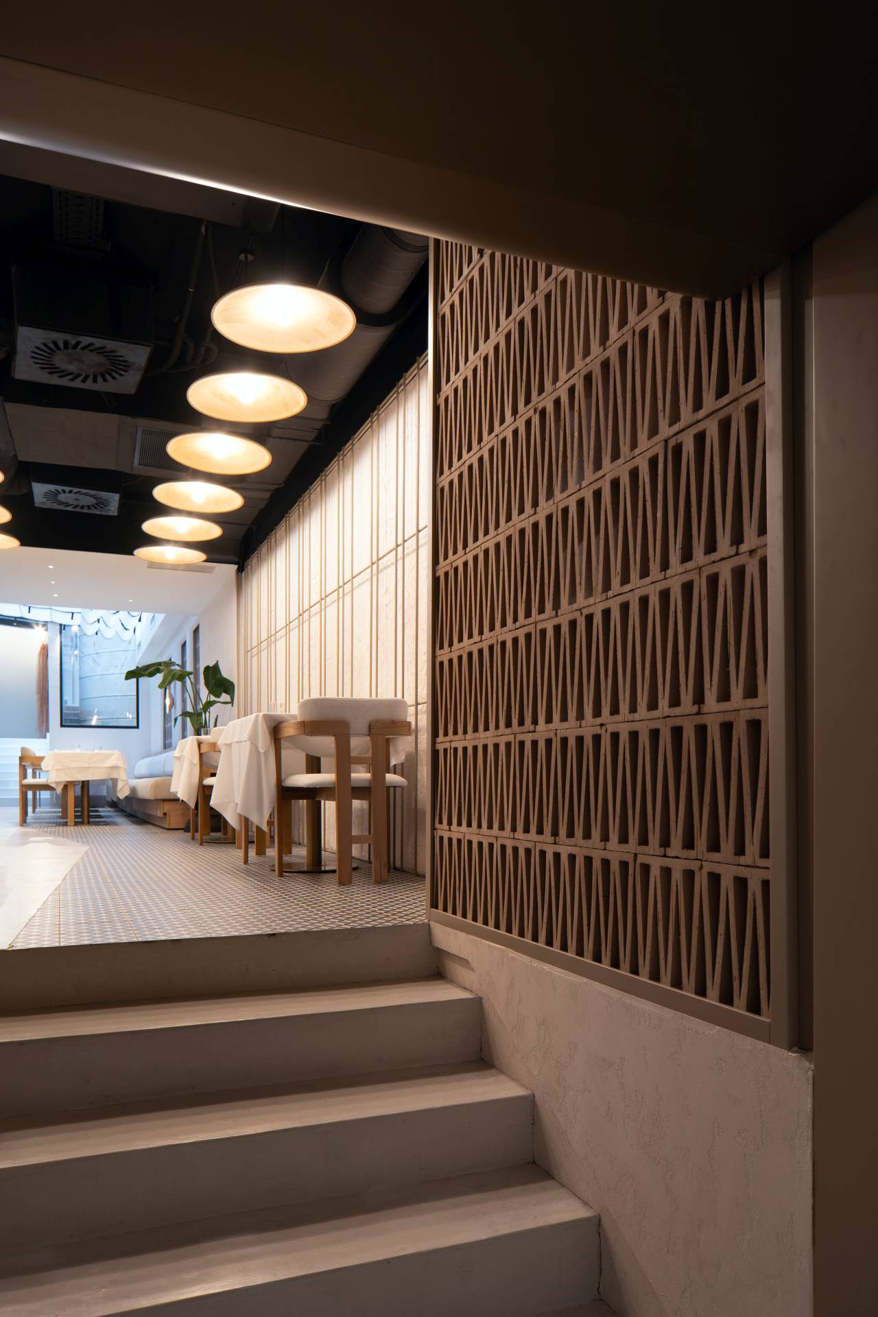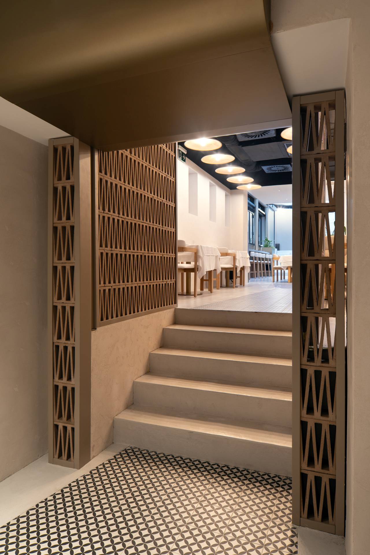 Pristup je bio sveden i disciplinovan. Korišćeni su prirodni materijali – opeka, drvo, liveni podovi i malteri, u blagim nijansama koje naglašavaju taktilnost prostora.