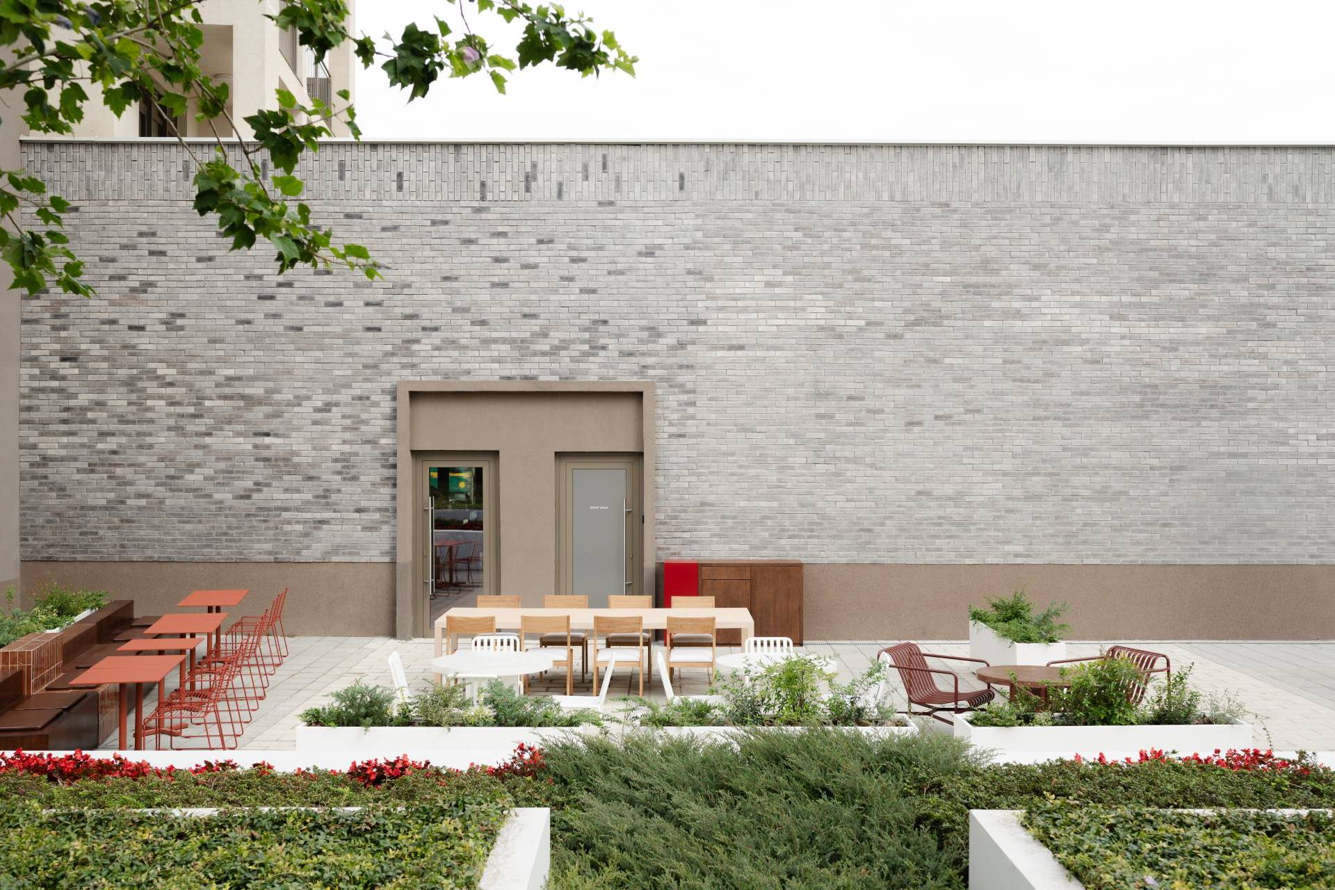 Raspored je osmišljen tako da tim intuitivno funkcioniše, dok gosti imaju uvid u proces stvaranja. Tokovi osoblja i posetilaca su fizički odvojeni, ali vizuelno povezani kroz otvorene kuhinjske zone i izložene površine.
