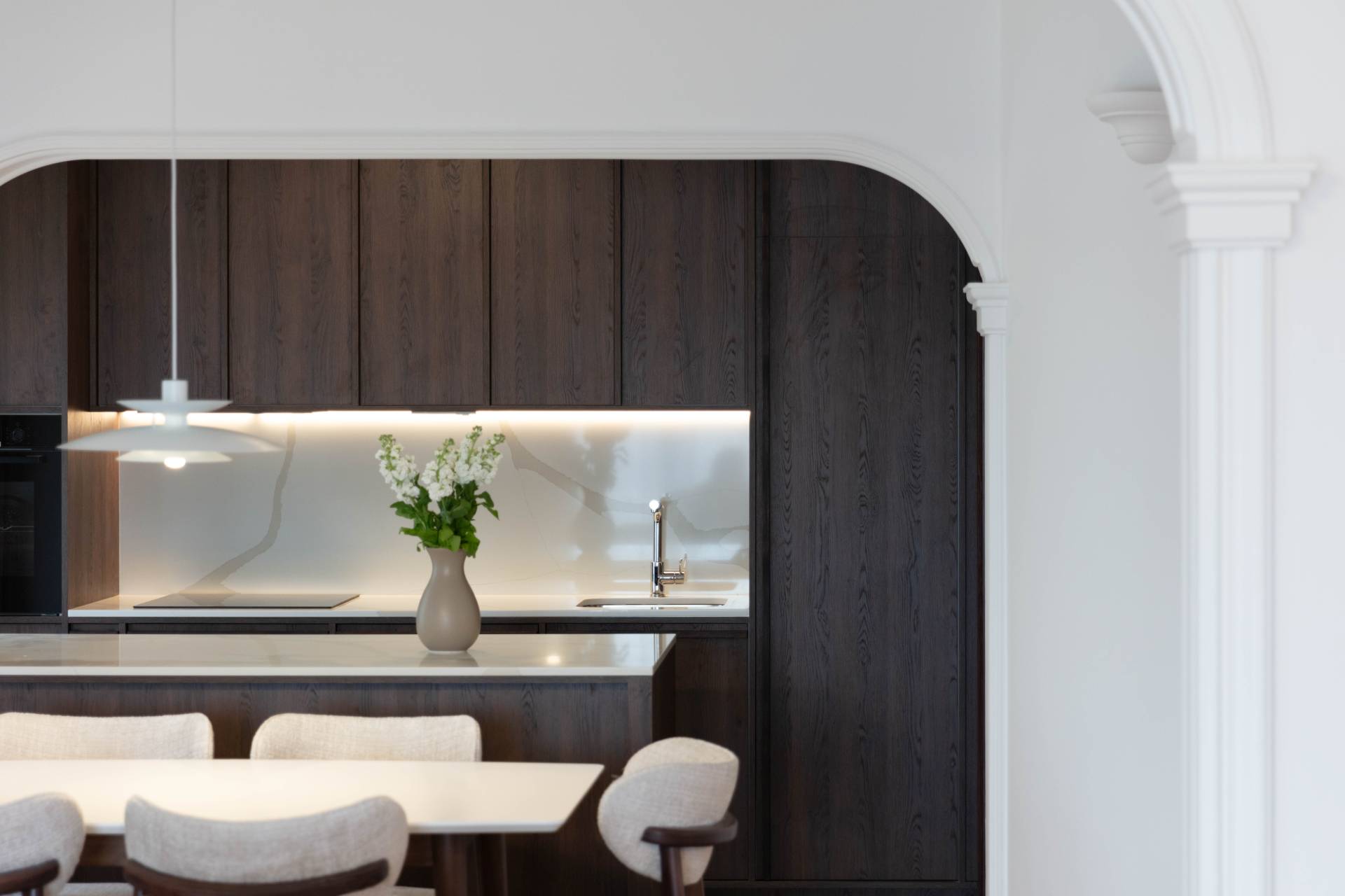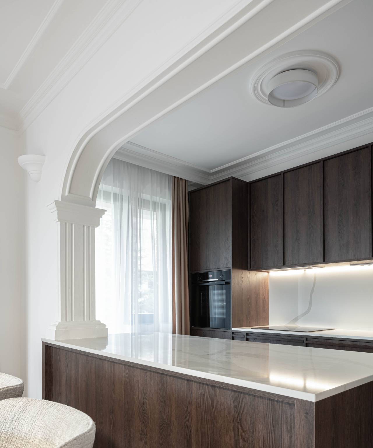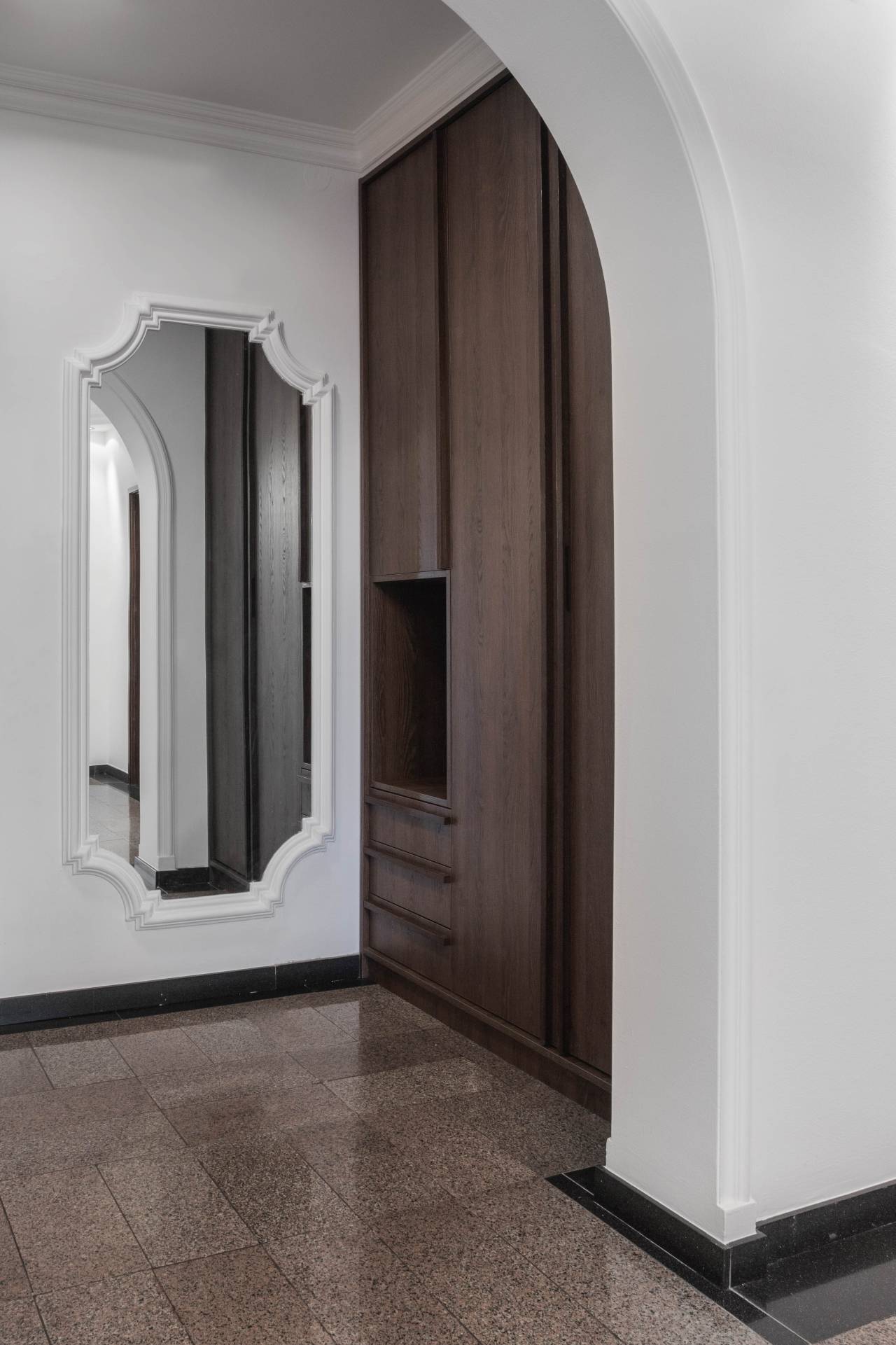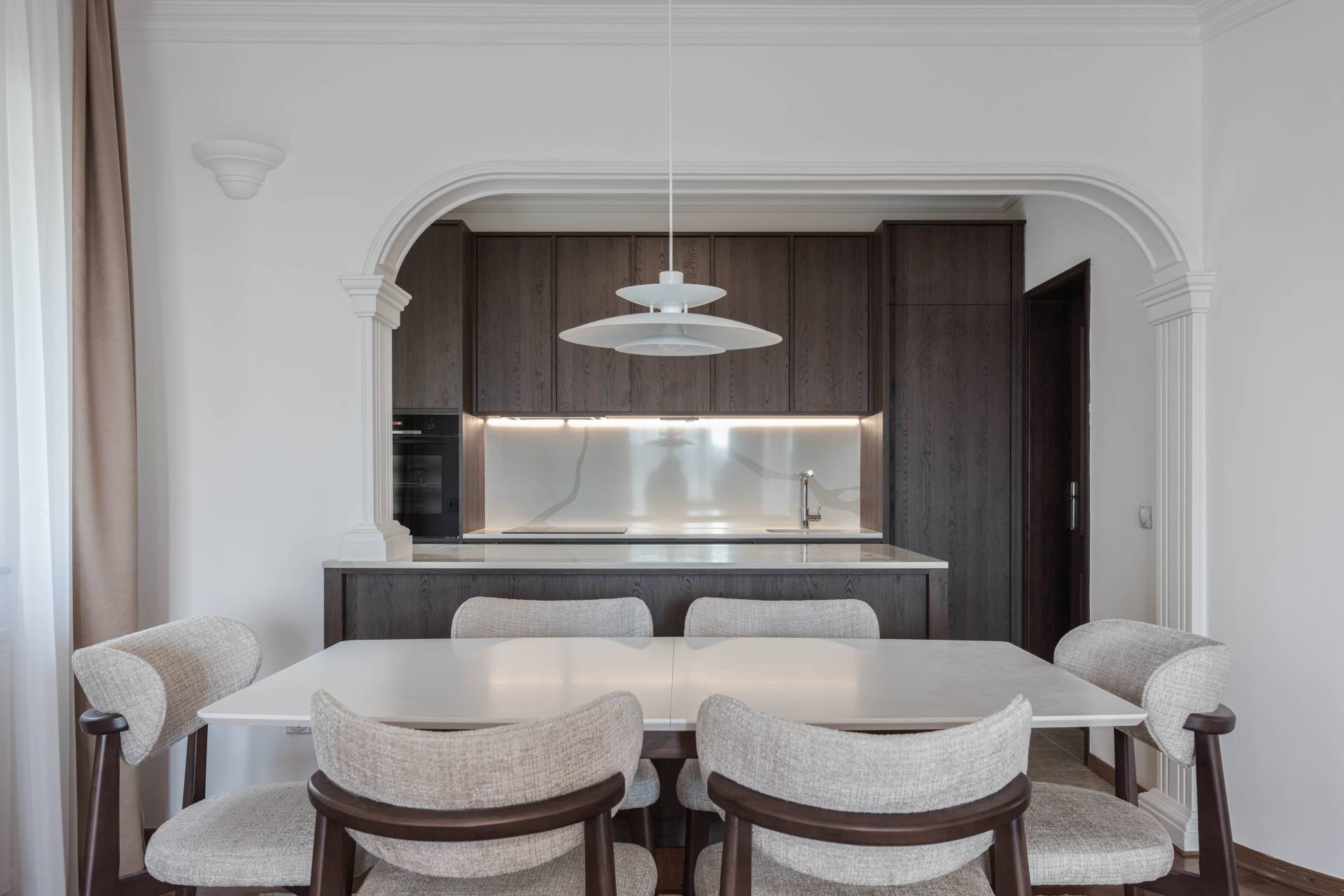 Balans između estetike i funkcionalnosti postignut je jasnom hijerarhijom elemenata. Klasični sloj enterijera ostaje kao karakter, dok savremeni sloj uvodi red, mir i bolju organizaciju.