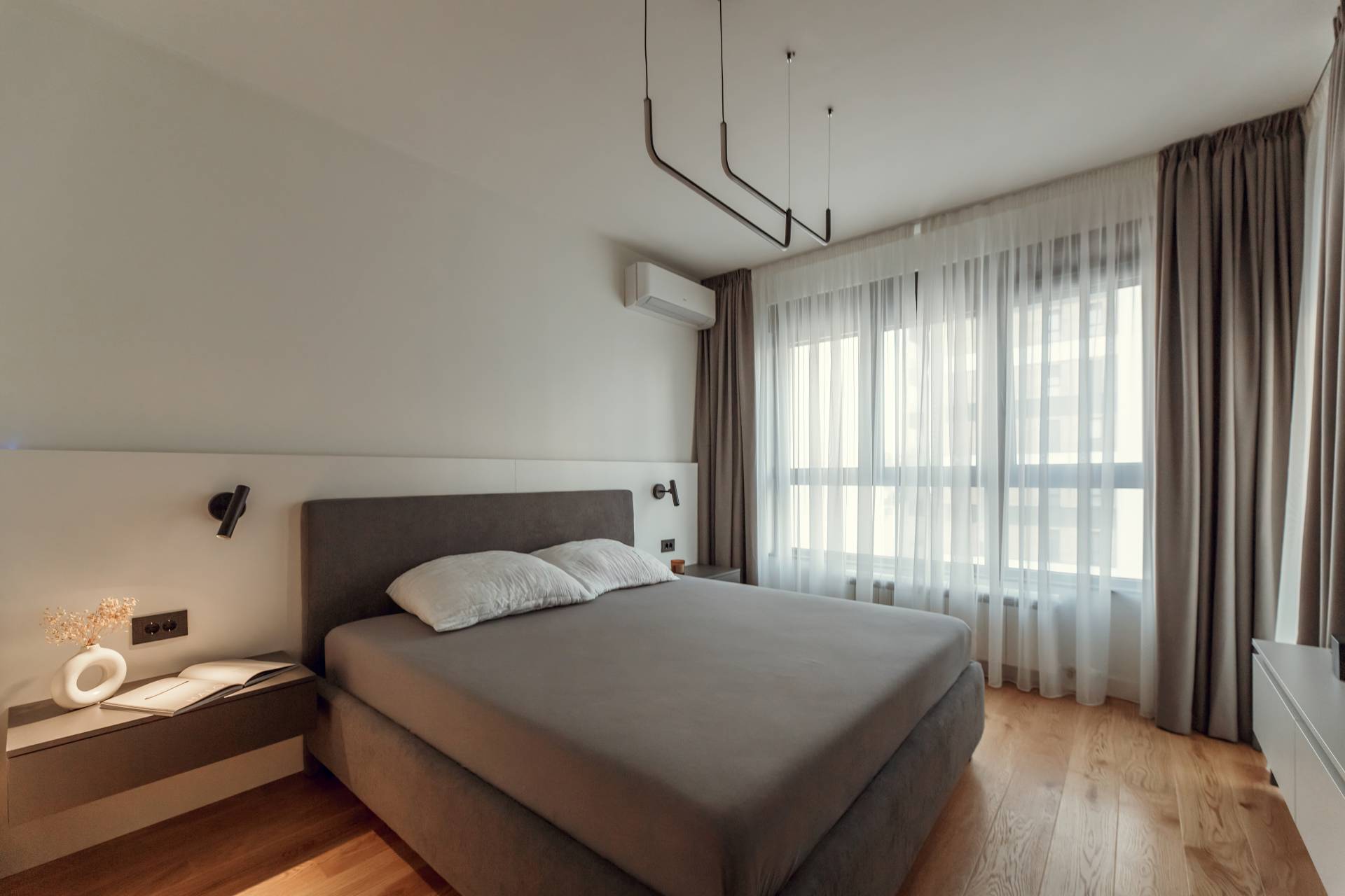 Master spavaća soba krije dobro osmišljen prostor za garderobu, dok su tonovi nameštaja i posteljine ostali u neutralnoj paleti koja odiše mirnoćom.
