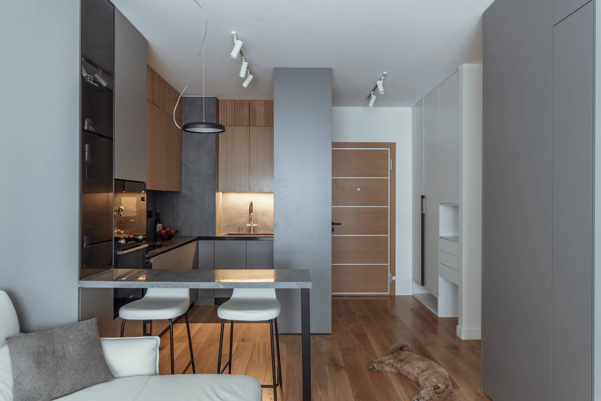 Upravo u toj jednostavnoj formulaciji krije se odgovor na pitanje zašto ovaj stan funkcioniše savršeno – jer uspeva da pomiri savremeni minimalizam sa toplinom doma.