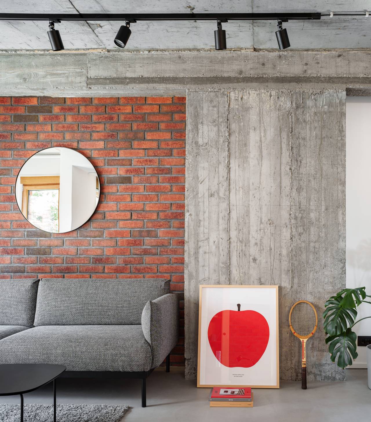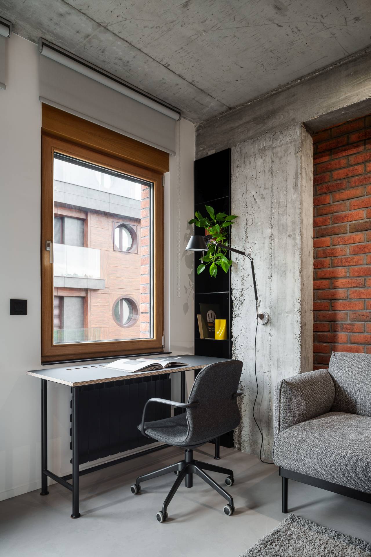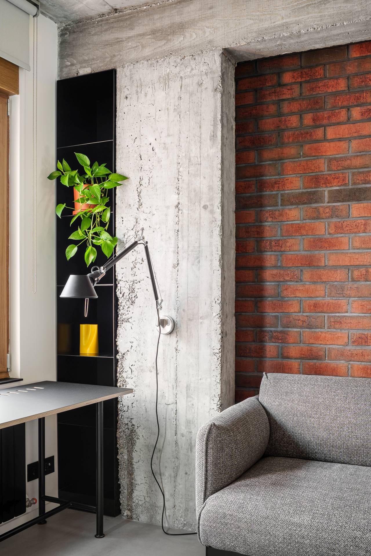 Betonska konstrukcija, koja je u startu dominirala prostorom, postala je nosilac identiteta enterijera. “Početno stanje postalo je ključni arhitektonski element koji definiše identitet enterijera”, navode iz studija, uz dodatak da je inspiracija pronađena u spoju industrijskih materijala i toplijih, prirodnih tekstura.