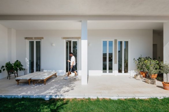 Napolju se nalazi terasa, gde porodica može da se sunča i uživa u vrtu sa pogledom na reku. Dominacija bele boje nastavlja se i u spavaćim sobama, od kojih jedna ima izlaz na dvorište ispunjeno šljunkom.