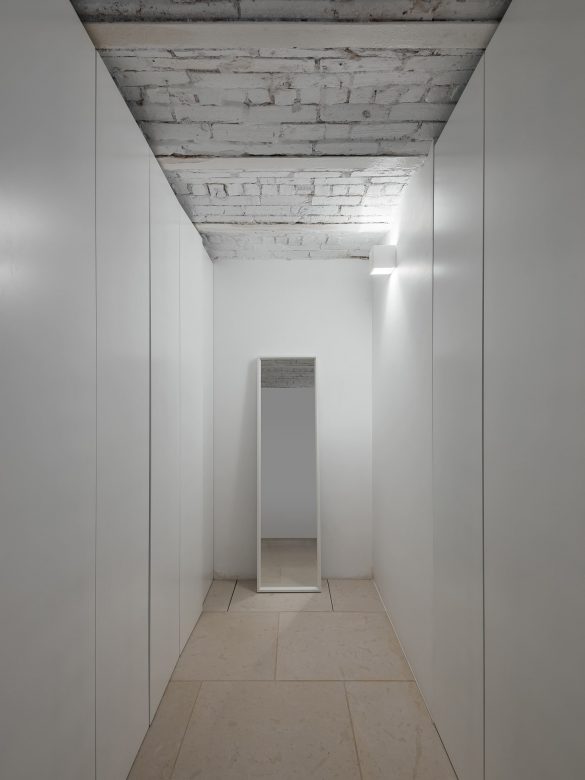 U prostoru se nalazi dosta visokih hodnika, koji su sačuvani i nisu pregrađivani, a arhitekta je vratima i zavesama uspeo da napravi neophodni osećaj privatnosti u sobama kada za tim ima potrebe.