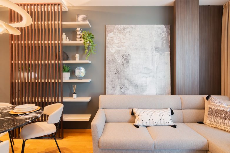 Za stan u novogradnji od 51 m2, u čijem sklopu su kuhinja, trpezarija i dve spavaće sobe bilo je potrebno osmisliti enterijer koji će pružiti utočište od gradske vreme. Vlasnici stana želeli su stan koji odiše zagasitijom atmosferom, u kojem će pojedini elementi iskočiti u prvi plan. Taj zadatak pripao je dizajnerki enterijera Sonji Brstini iz Novog Sada.