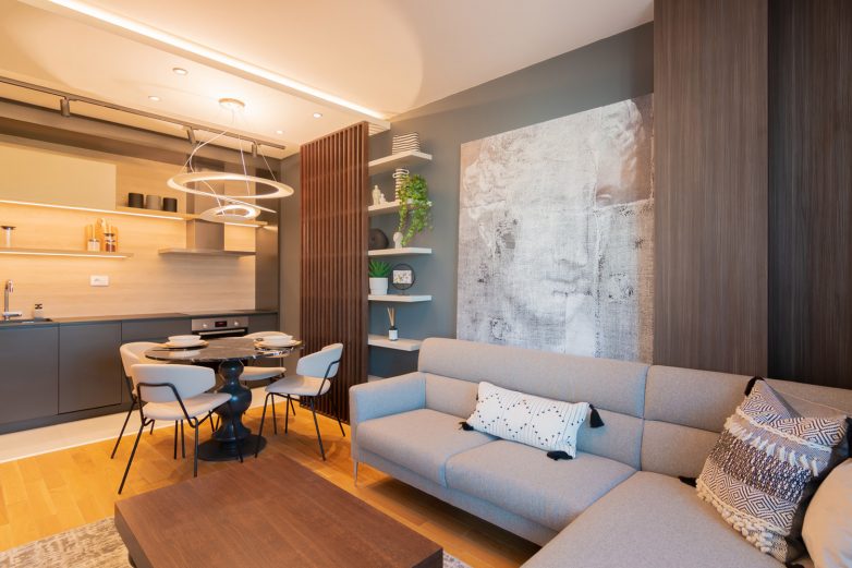 Tamne nijanse u enterijeru nisu toliko česte. Ipak, u ovom trosobnom stanu u Novom Sadu, vlasnici su želeli toplu, zagasitu atmosferu.