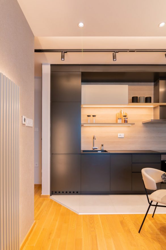 Tamne nijanse u enterijeru nisu toliko česte. Ipak, u ovom trosobnom stanu u Novom Sadu, vlasnici su želeli toplu, zagasitu atmosferu.