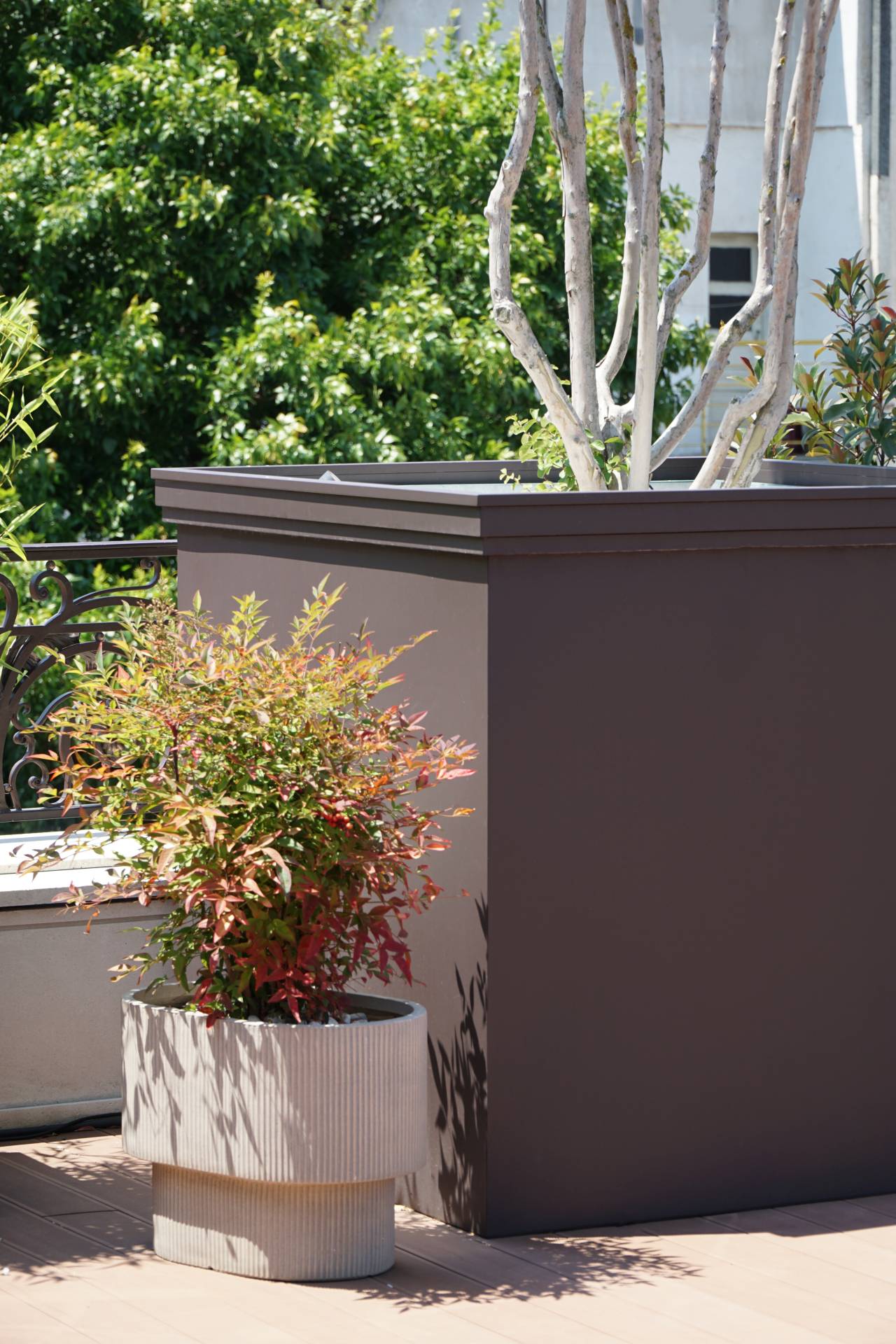 Bambusi, lovor višnje, ruzmarin, lavanda, masline, oleandri, japanske suručice, javori i nandine doprinose slojevitosti prostora i menjaju njegov karakter tokom godišnjih doba.