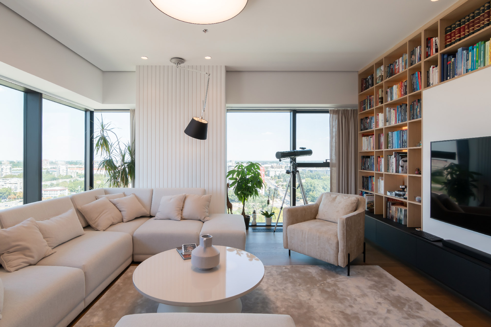 U jednoj od najviših zgrada u Beogradu, u kuli West 65 visokoj 155 metara, arhitektkinja Sonja Brstina imala je priliku da dizajnira i kompletno opremi trosoban stan od 97 kvadratnih metara orijentisan na dve strane.