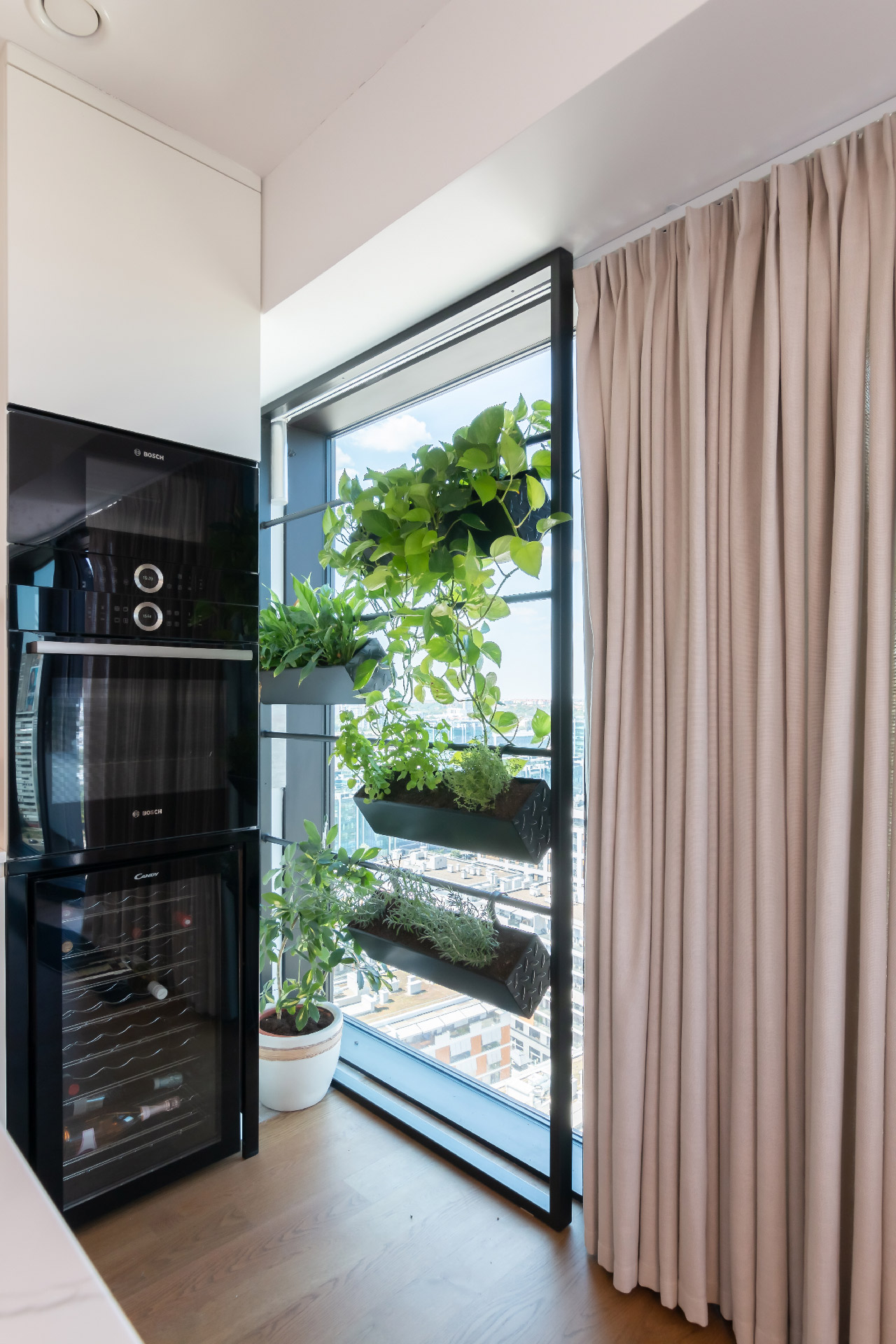 Kao poseban detalj izdvaja se metalni nosač za biljke i uzgajanje začina koji je smešten uz kuhinju. Bosiljak, nana i ruzmarin su našli pogodno mesto za rast u ovom stanu.