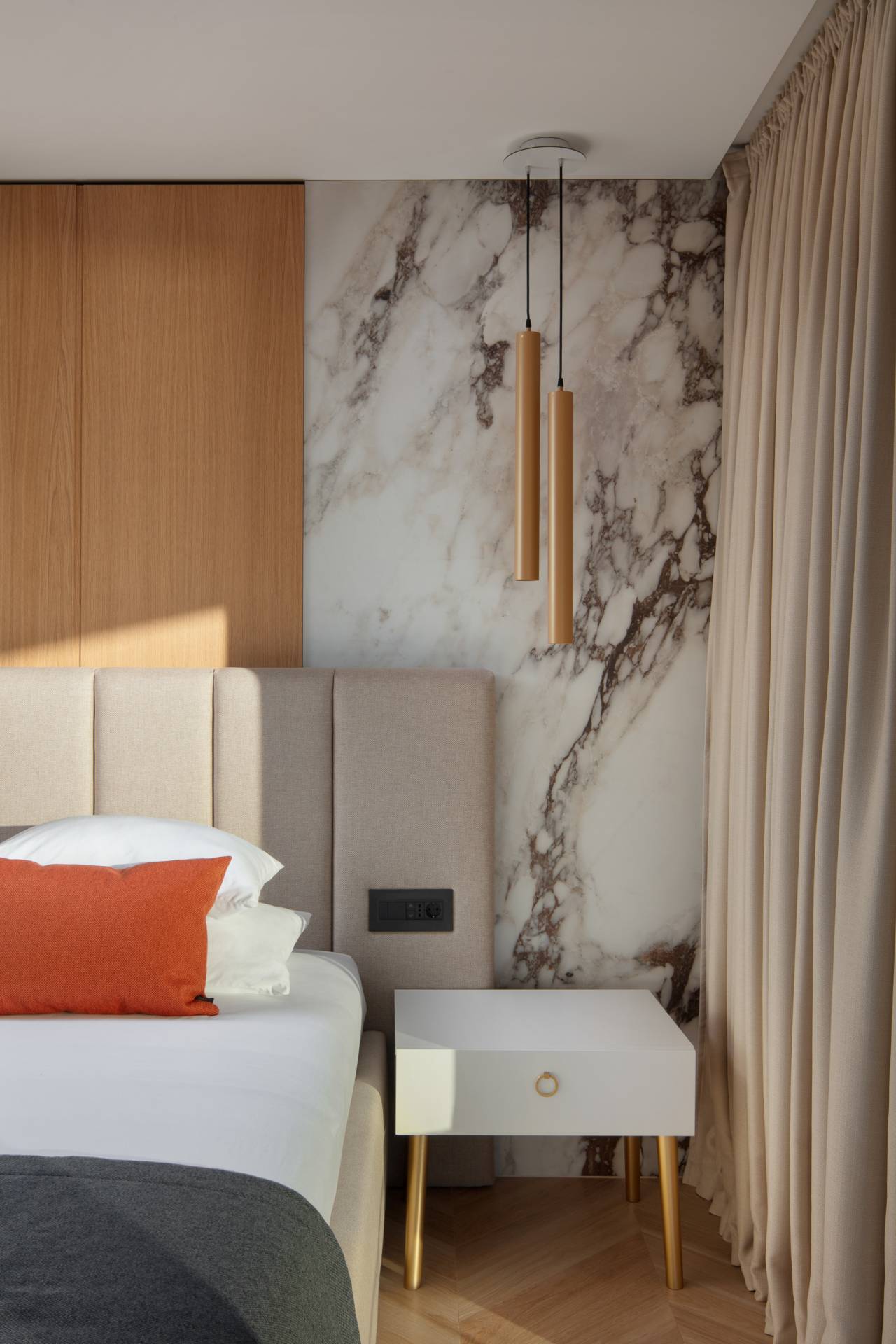Tome se pridružuju brojni elementi izrađeni po meri, koji dodatno naglašavaju individualnost svakog dela enterijera i doprinose utisku da je svaki prostor pažljivo promišljen do detalja.