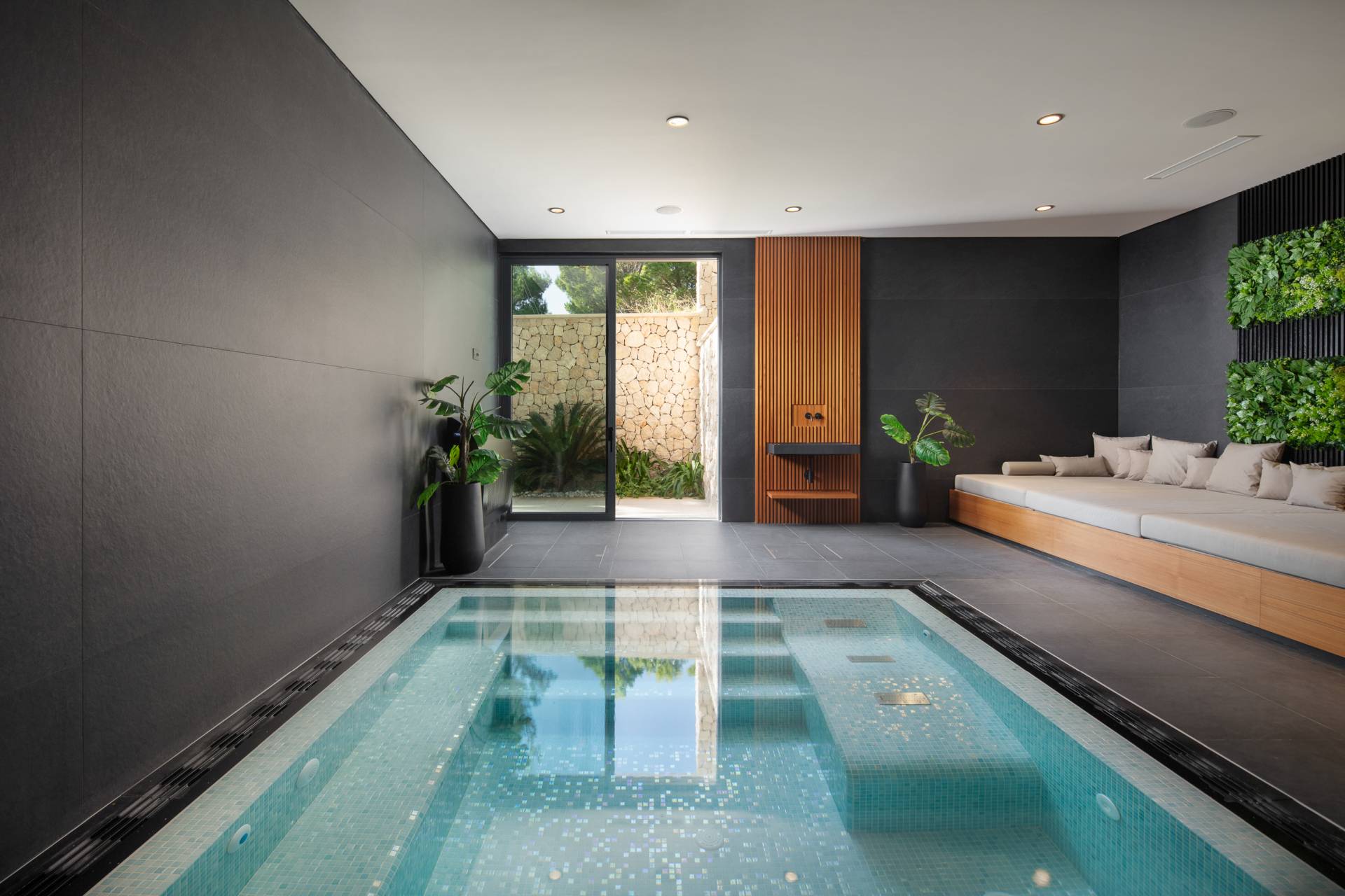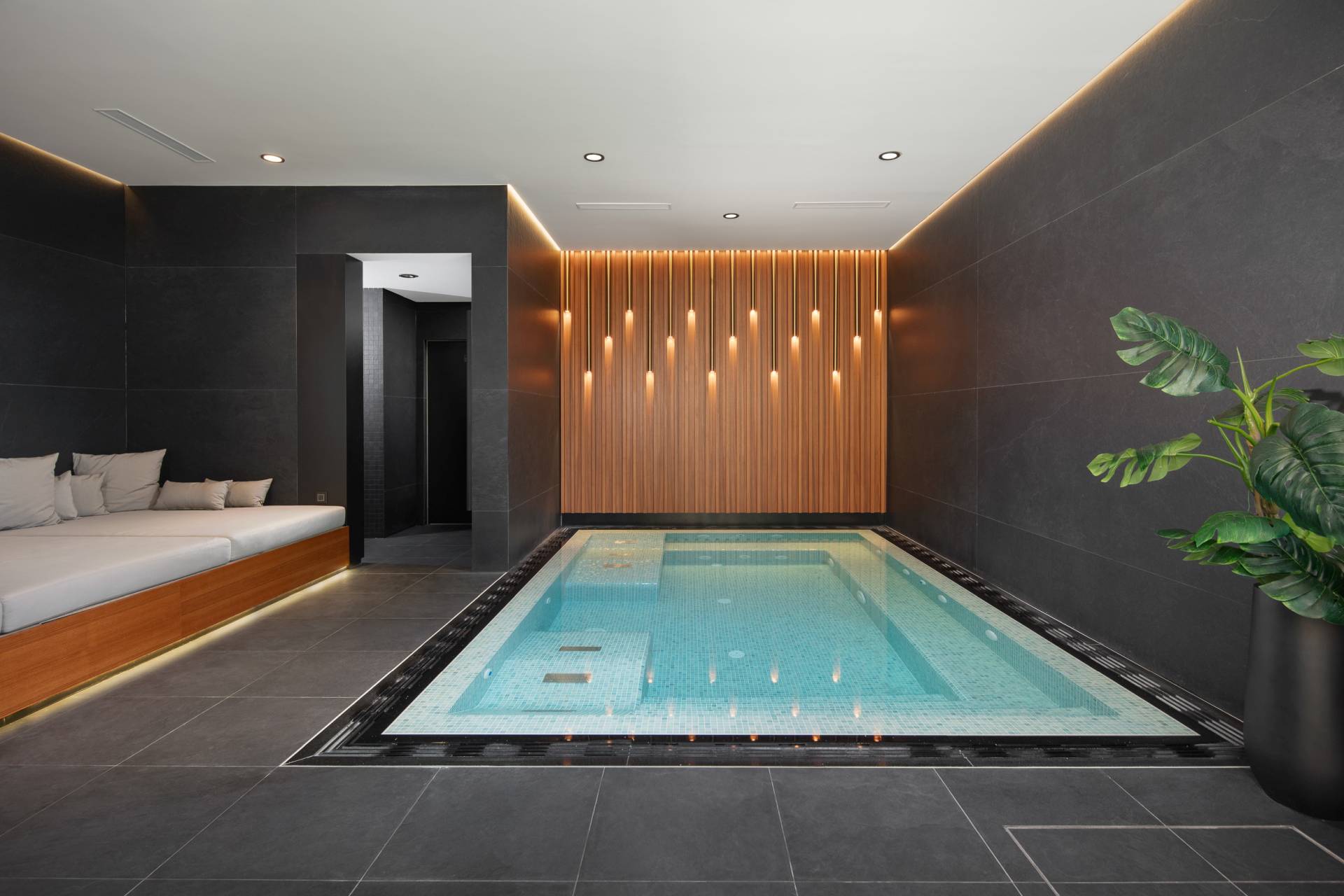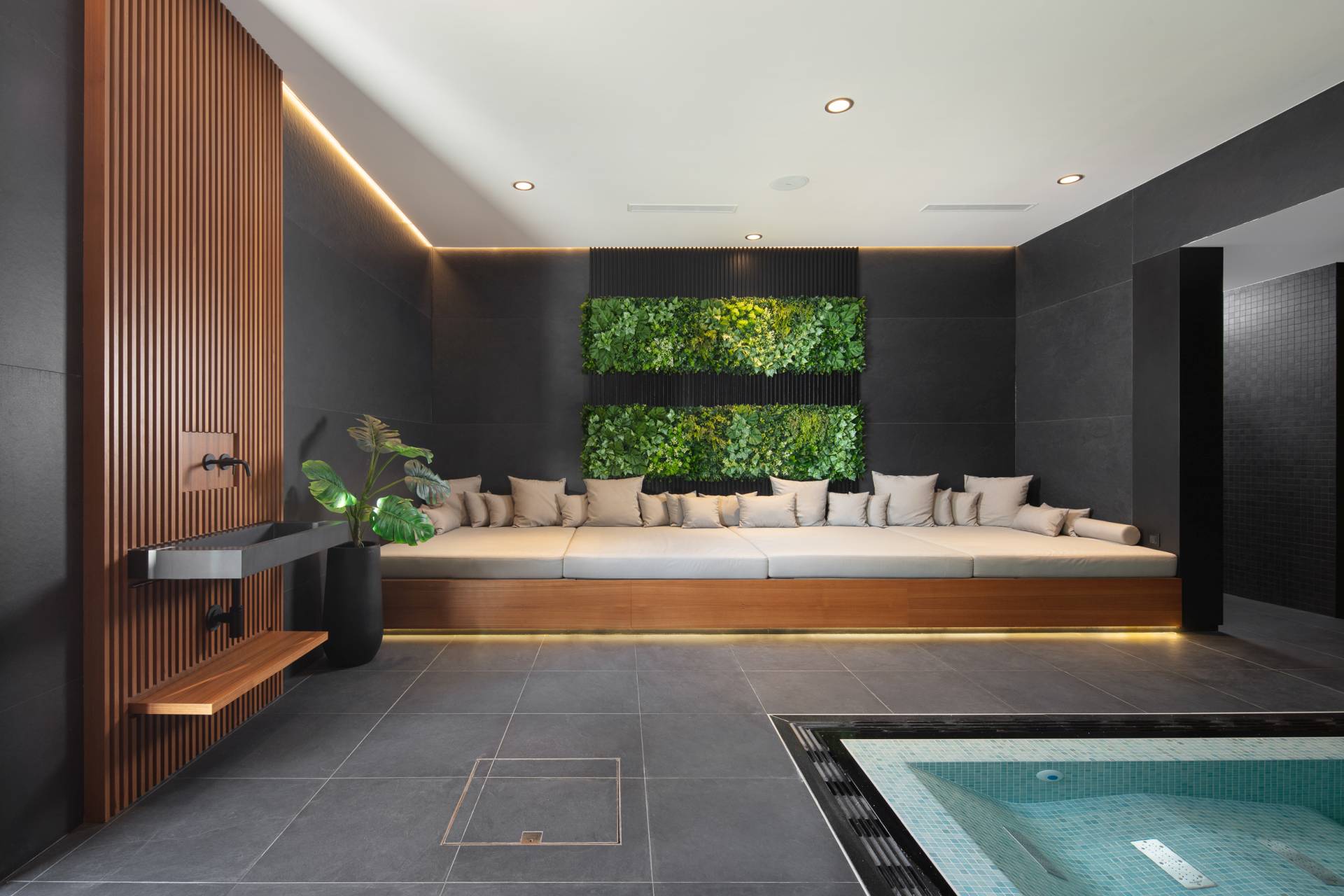 U “wellness” zoni centralno mesto zauzima unutrašnji đakuzi izveden po meri. Oblagan mozaikom koji reflektuje svetlost, on stvara ambijent luksuznog spa centra i postaje jedan od najupečatljivijih elemenata ove zone.