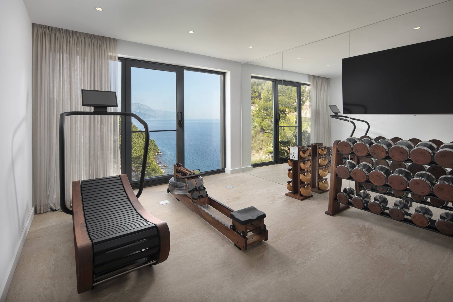 Poseban utisak ostavlja i sauna koja ima otvoren pogled na more, dok je teretana opremljena dizajnerskom opremom.