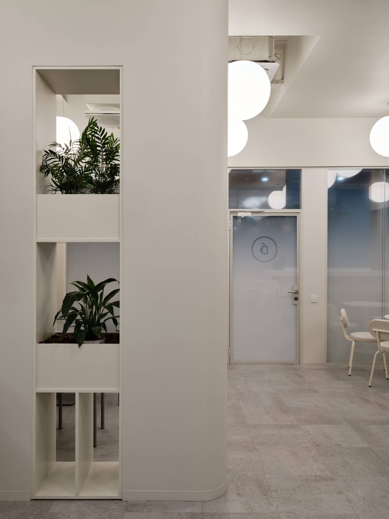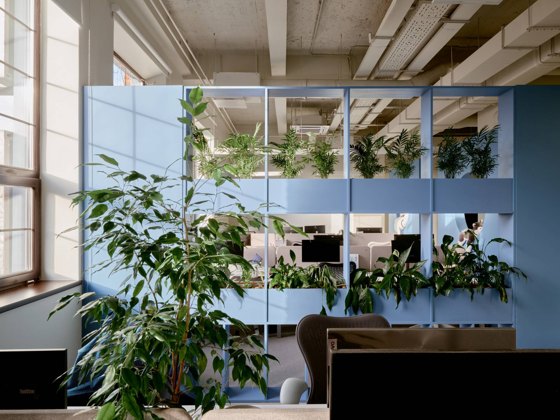 U čitavom enterijeru prisutne su brojne biljke, integrisane u police i žardinjere. U kombinaciji sa velikim prozorima i obiljem prirodnog svetla, one unose prirodu u radni prostor, poboljšavaju kvalitet vazduha i doprinose opštem osećaju blagostanja.