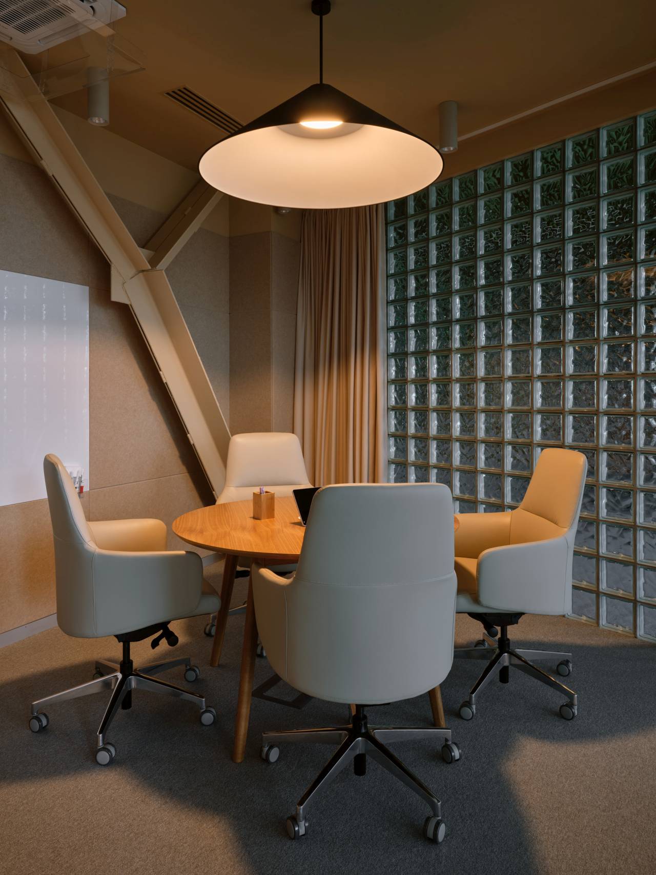 Kako se svetlo menja, menja se i doživljaj staklenih struktura, refleksija i prolaza. Kretanje kroz kancelariju tako postaje aktivan deo iskustva, a prostor dobija slojevitost koja prevazilazi njegovu funkcionalnu ulogu.