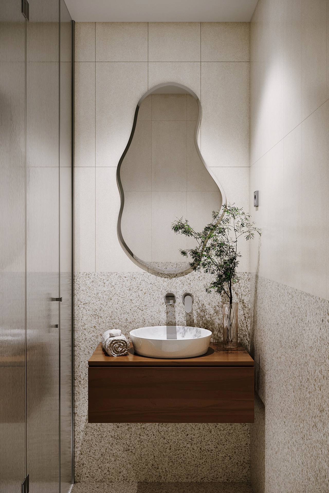 Jedinstvena forma ogledala i prirodni materijali daju ovim prostorijama dozu elegancije, ali i mladalačke svežine.