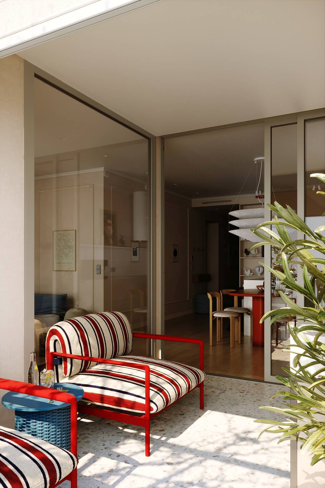 U pažljivo oblikovanom enterijeru, balkon je dobio status male oaze koja briše granicu između unutrašnjeg i spoljnog života.